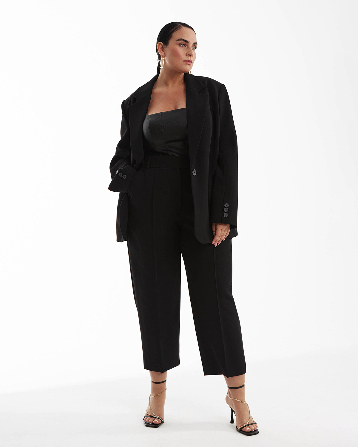 Жакет средней посадки — бестселлер DIVNO в новой ростовке, с укороченными рукавами и длиной. Двубортный жакет выполнен в классическом черном цвете и дополнен интересной деталью в виде акцентных пуговиц на рукавах. Это универсальная модель, свободная по посадке, но не слишком объемная. Теперь выбрать классический комплект с жакетом стало еще проще. Сочетайте его с брюками палаццо, бананами, юбкой миди или любимыми джинсами.