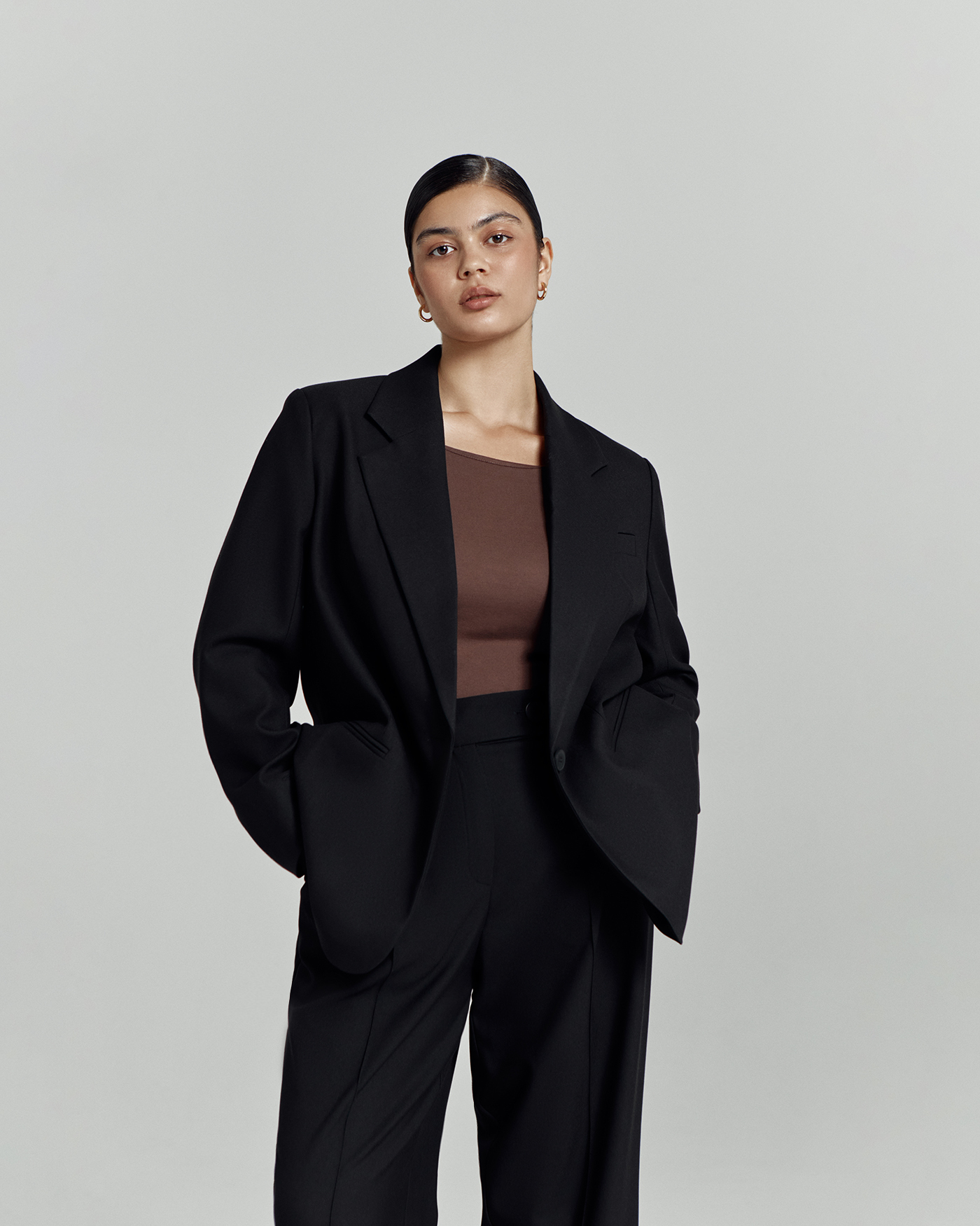 Брюки-бананы — бестселлер DIVNO в новой ростовке. Эти брюки влюбляют в себя благодаря красивой посадке и безупречному лекалу. Мы решили сделать их еще более универсальными, выпустив две версии длины. Теперь выбрать классические брюки со стрелками и высокой посадкой стало еще проще. Дополните их жакетом, чтобы собрать элегантный костюм-двойку для образов в офис.