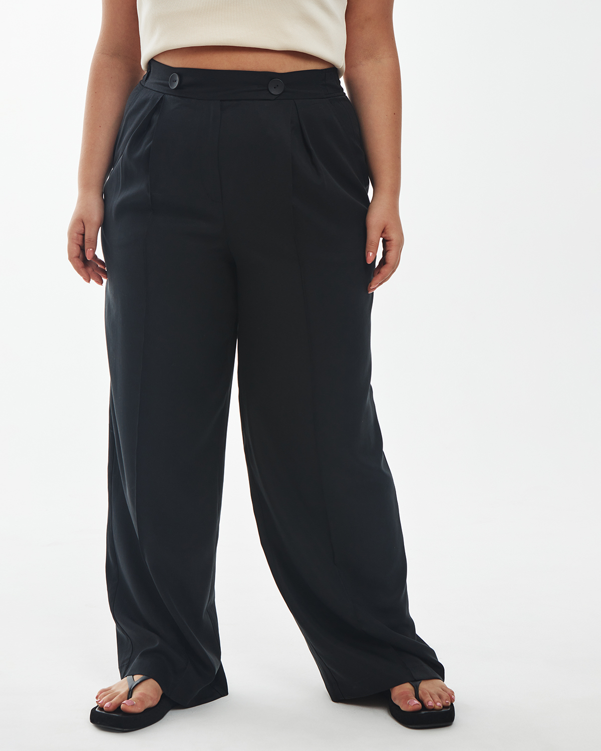 Оверсайз жакет DIVNO на одной пуговице с двумя карманами создан из купры. Материал выглядит максимально благородно и дорого: он бархатистый, сияющий и, что важно, дышащий и комфортный. Составляет комплект со свободными брюками палаццо того же оттенка.
