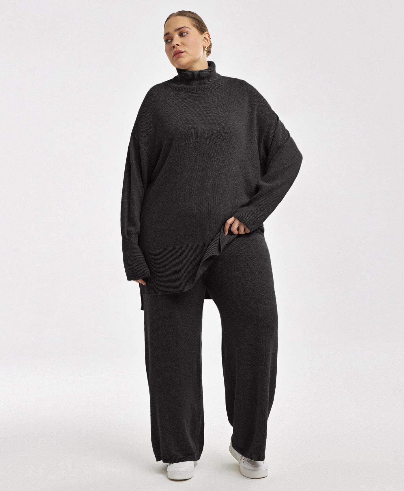 Брюки из теплой и мягкой ангоры согреют в непогоду и станут униформой как для расслабленных выходных, так и для занятых будней. Затягиваются на талии резинкой со шнурком, штанины — широкие, чуть расклешенные. Сочетайте с рубашками для более деловых случаев, либо с джемпером из того же материала в уютных образах.
