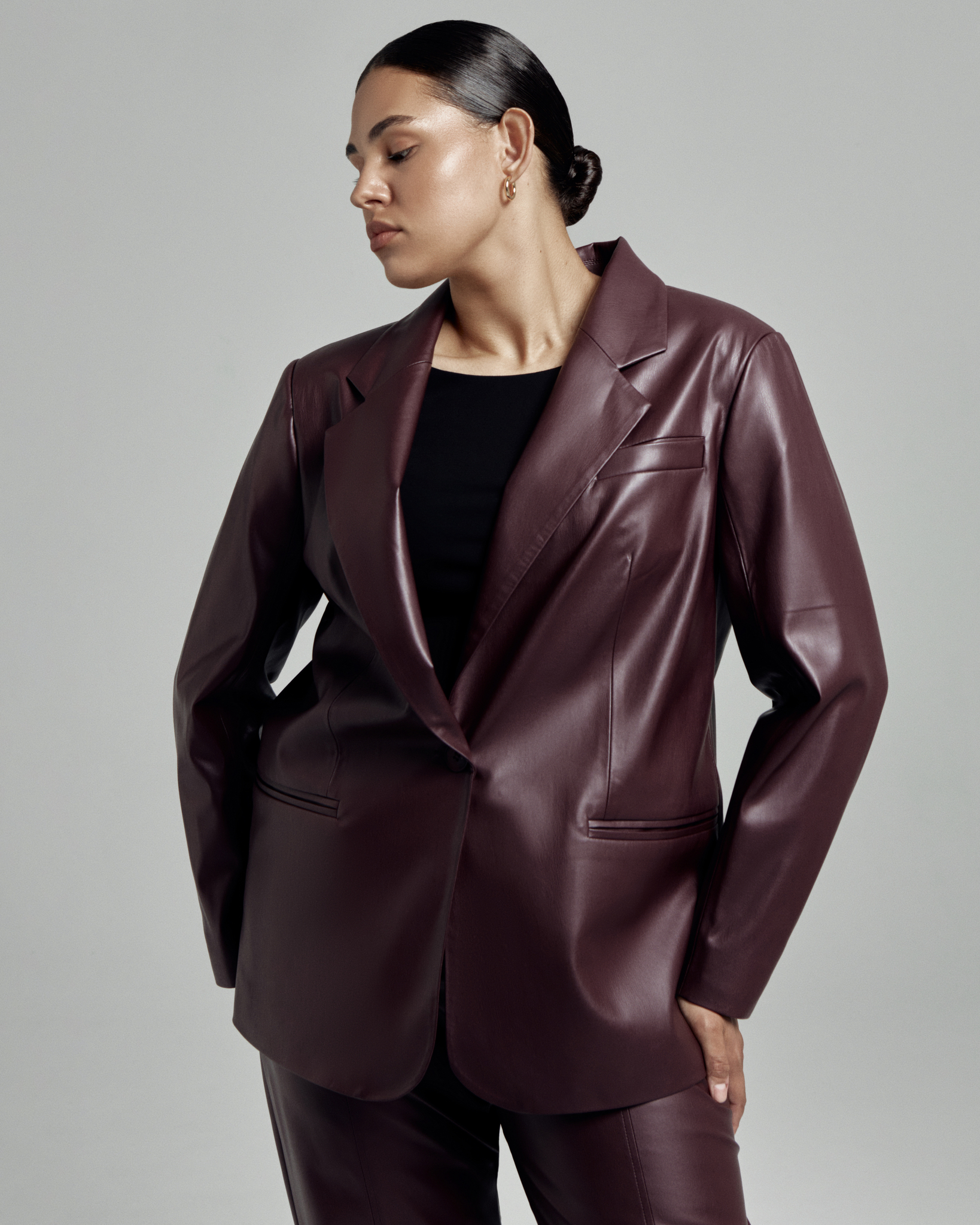 Брутальные брюки из мягкой экокожи станут классной альтернативой базовым джинсам. Вертикальные швы предотвращают растяжку ткани по колену и вытягивают силуэт. Комфортную посадку обеспечивает резинка, которая помогает изделию подстраиваться под особенности любой фигуры. Изделие дополняет красивая и качественная фурнитура под цвет брюк. Для офисного дресс-кода сочетаем брюки с классической рубашкой и жакетом, а для более неформального образа с ярким джемпером или спортивным свитшотом