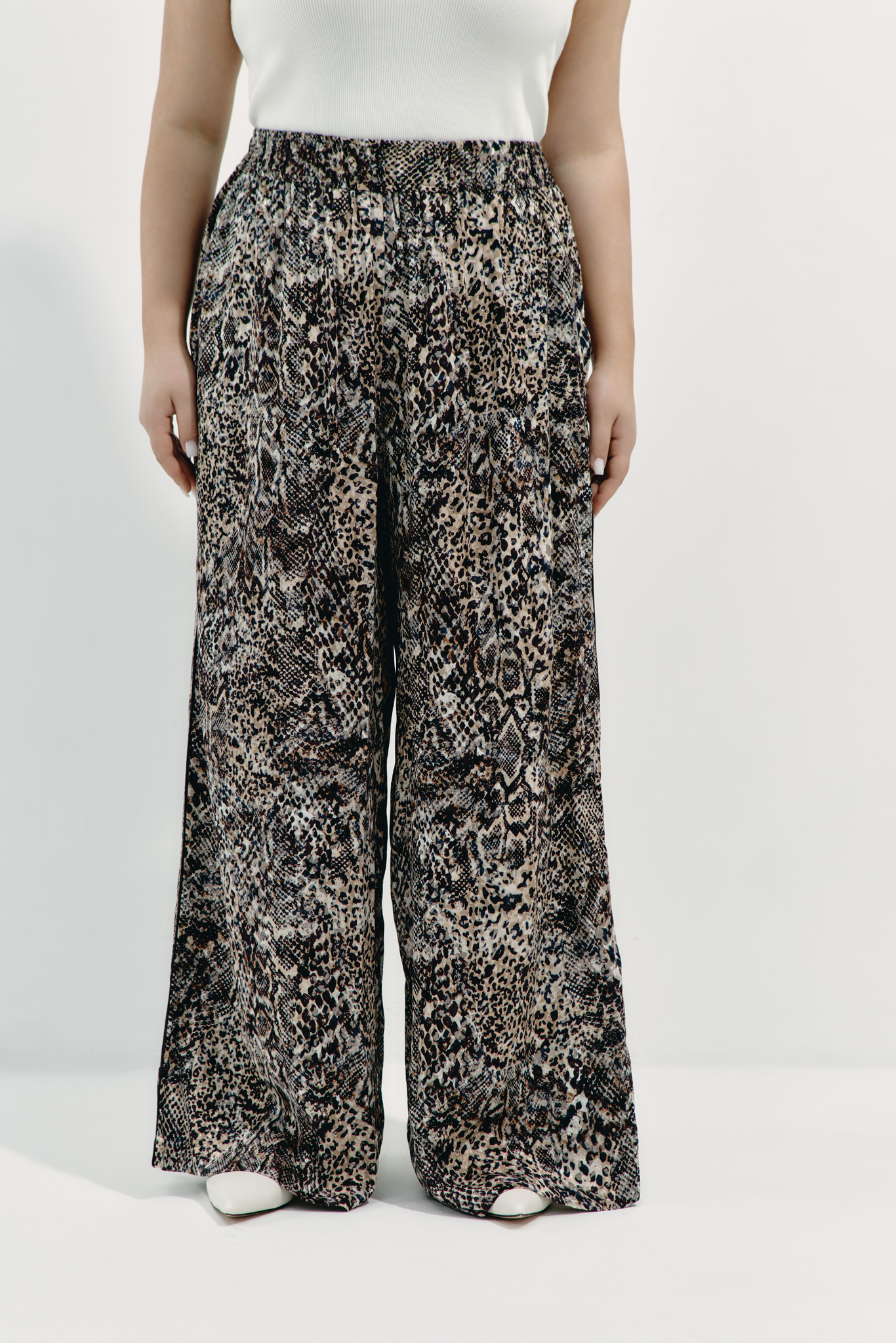 Свободная рубашка с разрезами на рукавах в анималистичном принте. Расслабленный крой и легкая летняя ткань обеспечивают комфорт даже в жару. Носите ее с брюками из комплекта для полноценного образа или сочетайте с любимыми джинсами, шортами или юбкой.