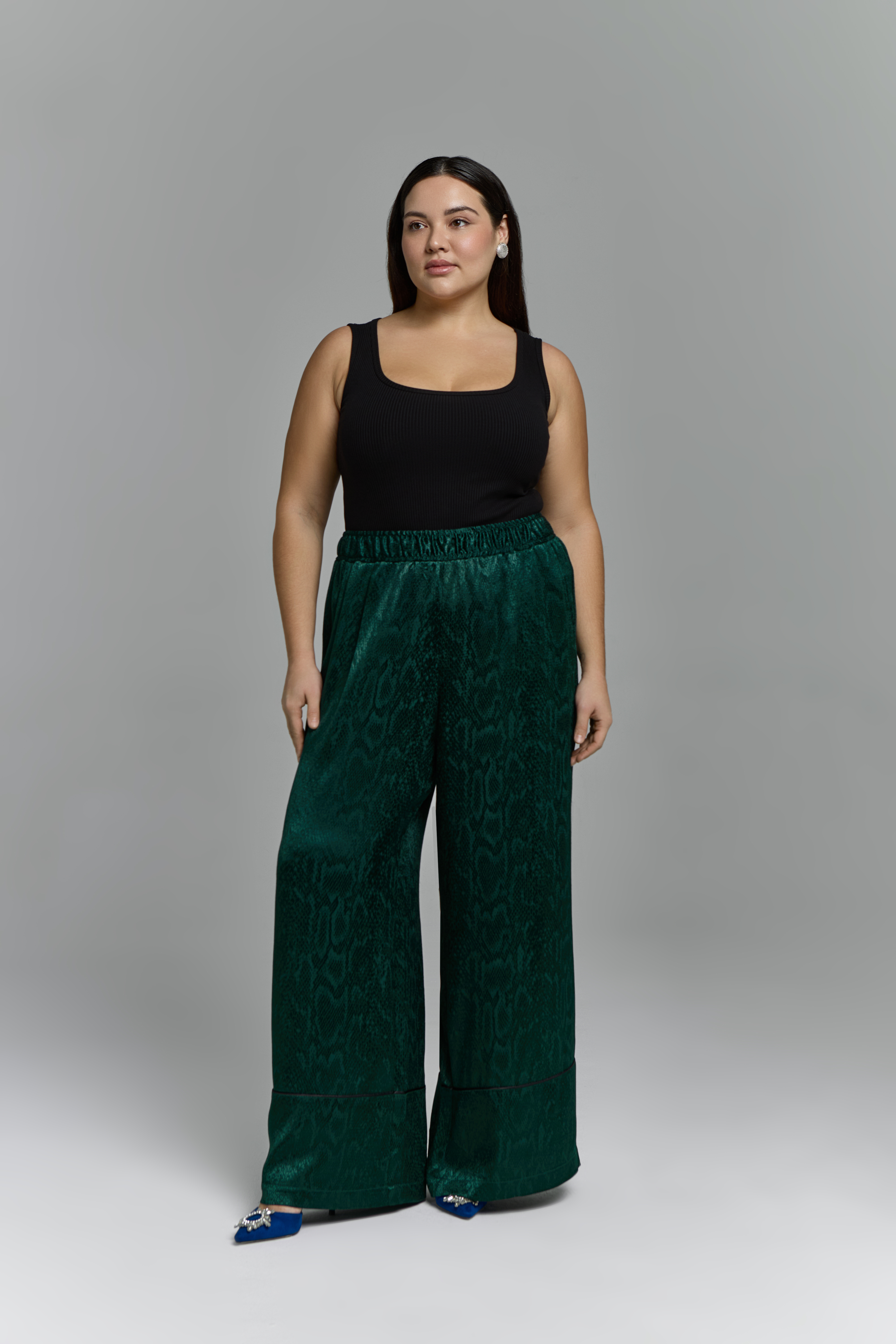 Блуза в пижамном стиле с контрастным кантом и фирменной вышивкой на кармане, из 100% мягкой вискозы. Анималистичный принт с легким переливом цвета делает образ выразительным. Представлена в трех оттенках: глубокий черный, изумрудный и бронзовый. Отлично сочетается с комплектными брюками, джинсами и юбками, подходя для повседневного стиля и главной ночи года.