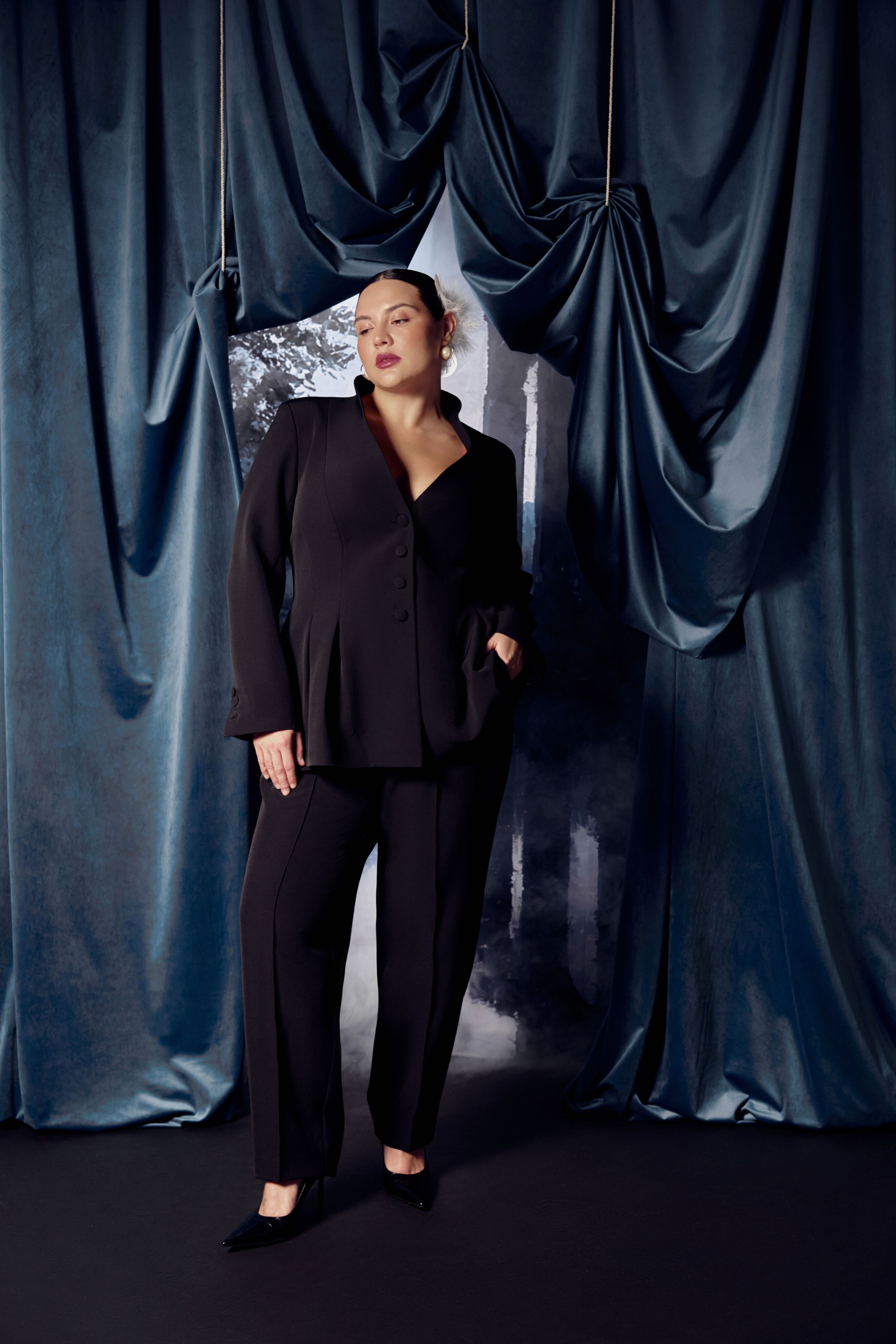 Брюки из костюмной ткани с зауженным кроем, который удлиняет ноги. Сочетайте с жакетом Odile для полноценного образа грациозного Черного лебедя или с рубашками и топами как самостоятельную базу для праздничного выхода.